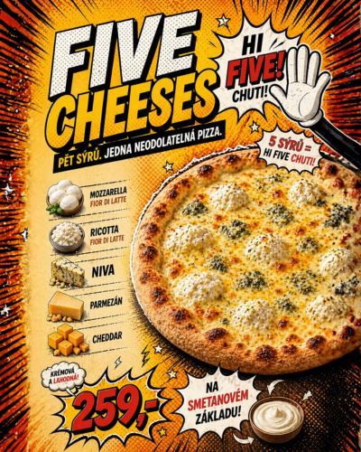 + Mozzarella 2x 15Kč, + Šunka 1x 15Kč