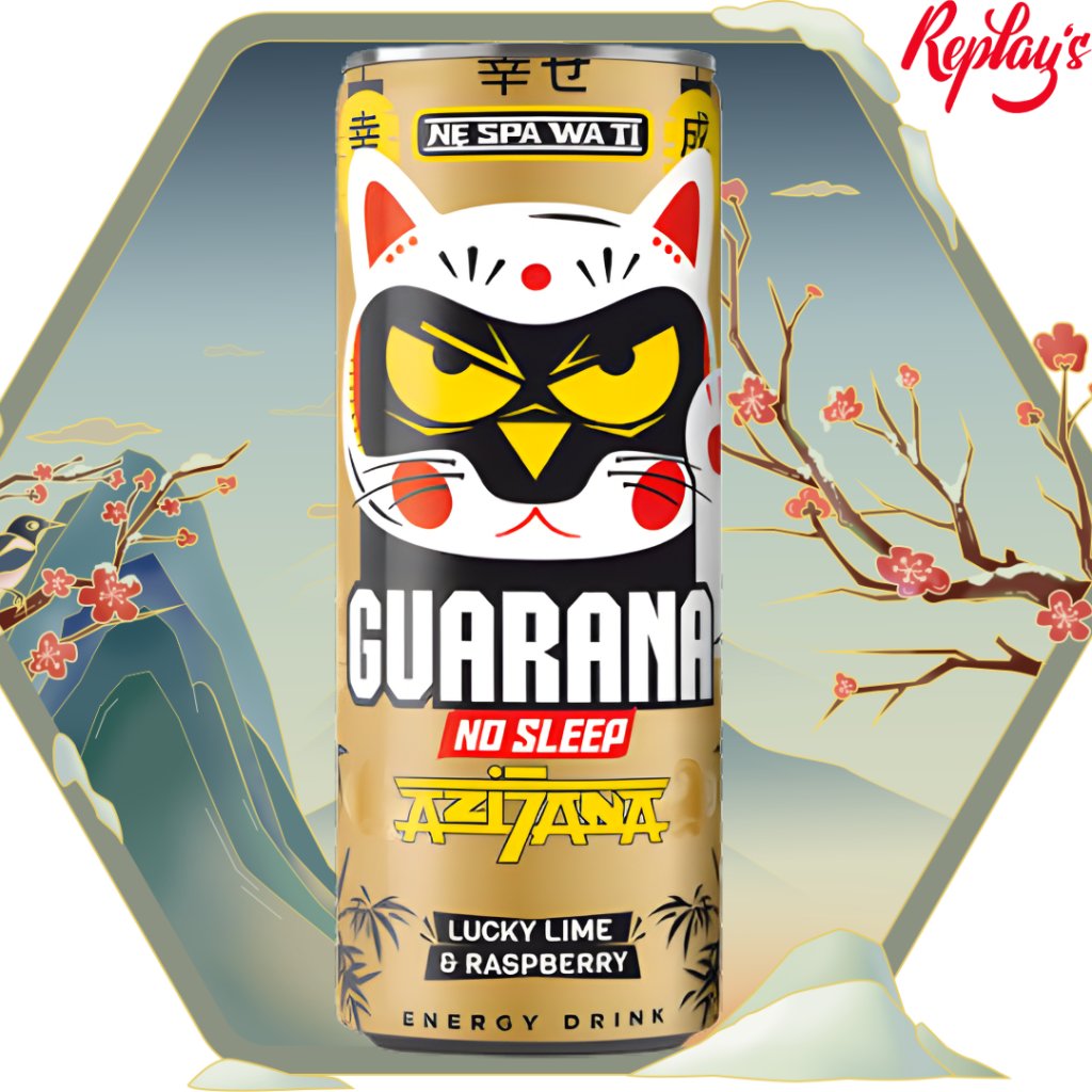 energetický nápoj Guarana No Sleep s příchutí limetky a maliny.